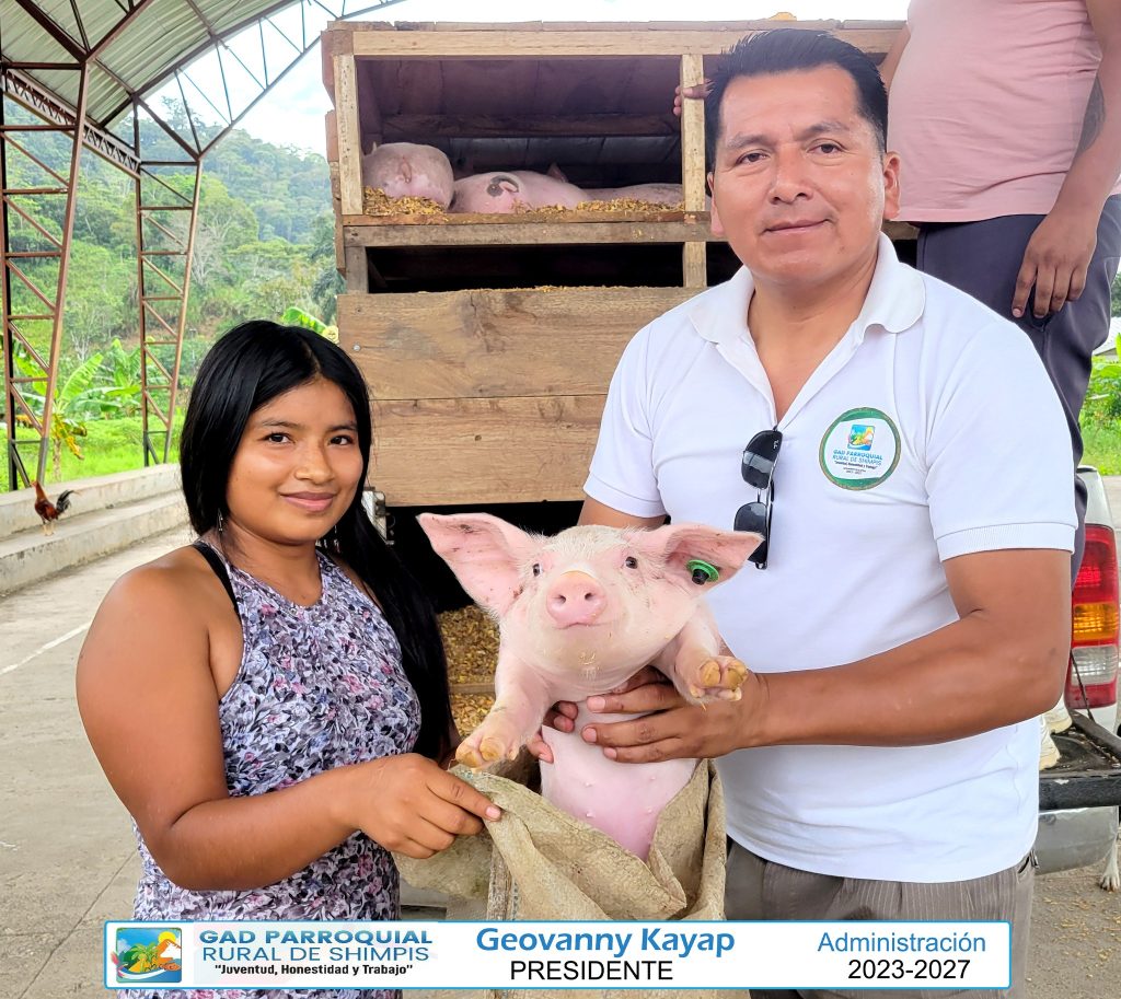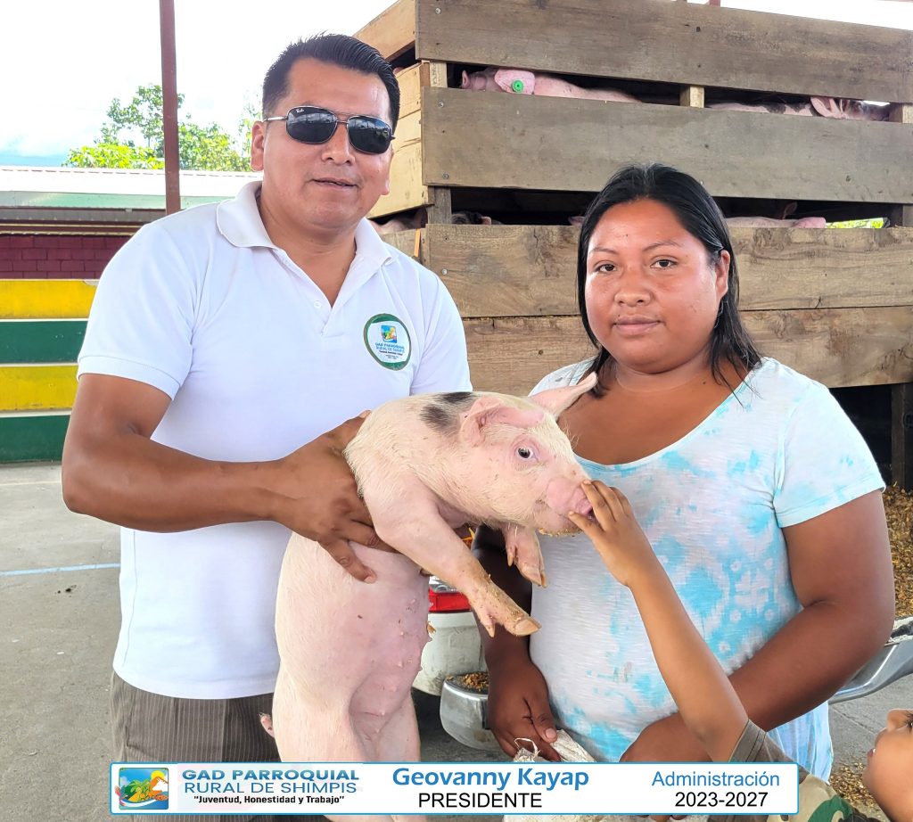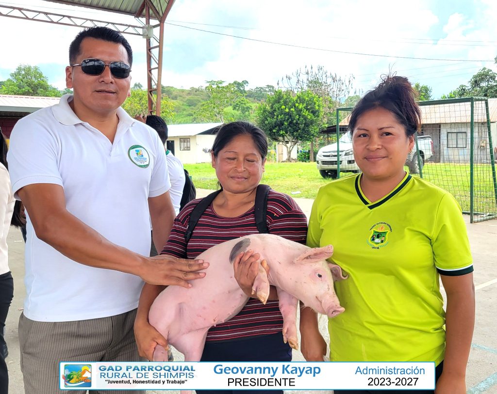 El GAD Parroquial de Shimpis realizó la entrega oficial del proyecto de cerdos en las comunidades de Chiwías y Wachmas, una iniciativa destinada a fortalecer la economía familiar y promover el desarrollo productivo local.
